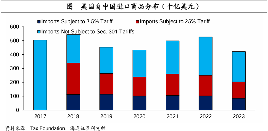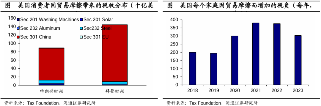 进一步来看,目前美国实施的贸易政策预计将征收790亿美元的关税,但这将使美国家庭平均每年增加200-300美元的税负。