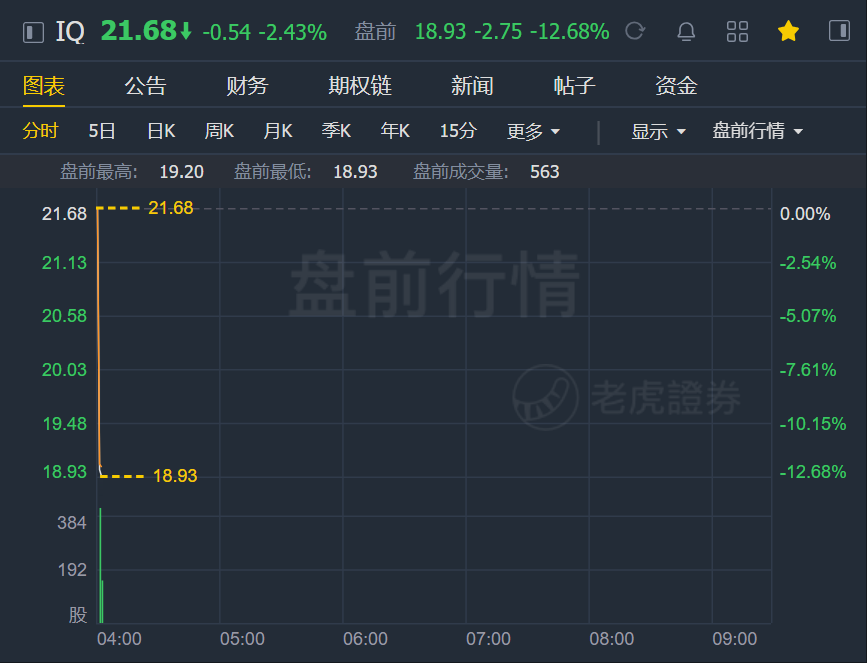 爱奇艺盘前跌超12%,第二季度亏损14亿美元,公司正在就Wolfpack做空一事接受美国证监会调查。