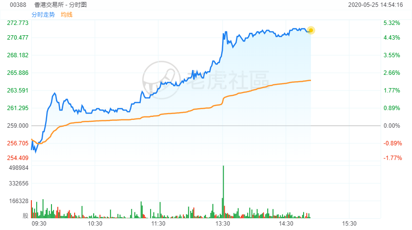 5月25日,恒指早盘小幅低开,随后呈震荡走势,截至发稿,恒指跌0.13%,报22902.68点。香港交易所盘中一度逆势大涨4.95%至271.8港元。大摩料中概股回归可令港交所收入倍增,上调其目标价15%至310港元。美团点评-W股价绩前抢跑,大涨超5%,报124.6港元。美团点评今日收市后将公布首季度业绩。
