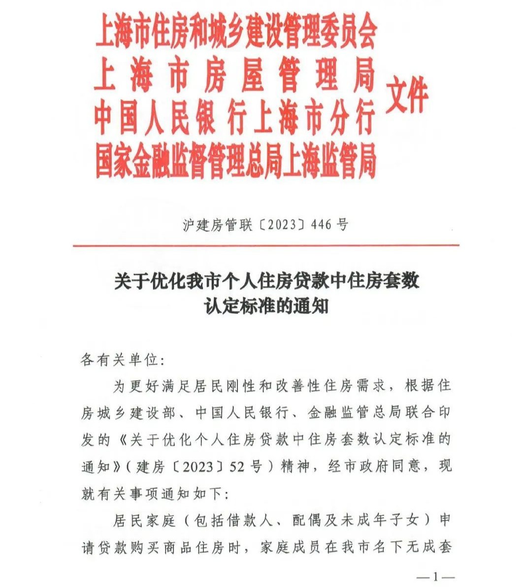 9月1日,据上海市住房城乡建设管理委消息,为更好满足刚性和改善性住房需求,使更多购房人能够享受首套房贷款的首付比例和利率优惠,9月1日,上海市住房城乡建设管理委、上海市房屋管理局、人民银行上海市分行、国家金融监督管理总局上海监管局联合印发了《关于优化我市个人住房贷款中住房套数认定标准的通知》,执行购买首套房贷款“认房不用认贷”政策措施。