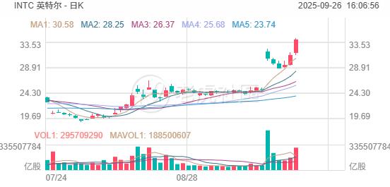 周五, 英特尔 盘前续涨5%,昨日大涨近9%,9月累计涨幅近40%。消息称英特尔与台积电接洽,商讨投资或制造合作事宜。知情人士称,这些努力在特朗普总统上个月对英特尔表示兴趣之前就已经开始,目前进入加速阶段。