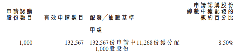 此外,公告显示,沛嘉医疗一手中签率为8.5%,200手(200,000股)稳中一手(1000股)。