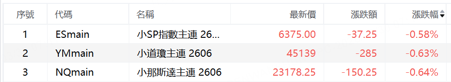 标普500指数期货下跌0.58%,纳斯达克100指数期货下跌0.64%,道琼斯指数期货下跌0.63%。