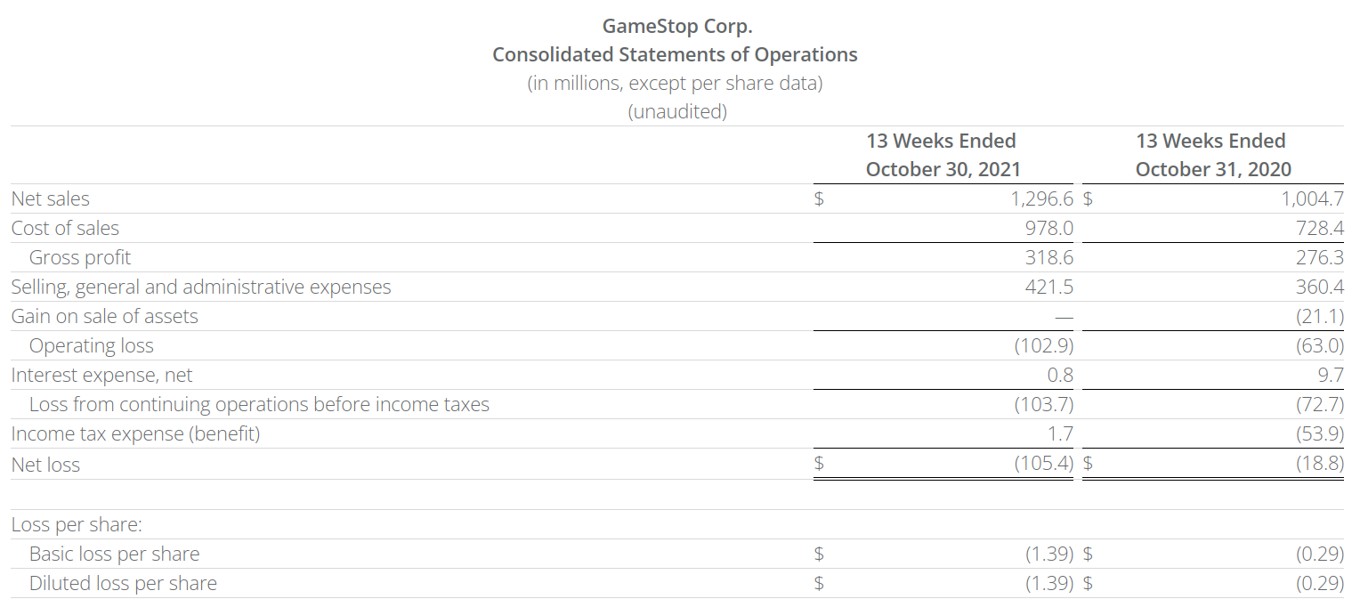 12月9日,游戏驿站发布2021年第三季度业绩。财报显示,第三季度营收12.97亿美元,市场预期11.89亿美元,去年同期10.05亿美元;第三季度净亏损1.054亿美元,市场预期净亏损3213.3万美元,去年同期1880万美元;第三季度每股亏损1.39美元,市场预期亏损0.4美元,去年同期亏损0.29美元。