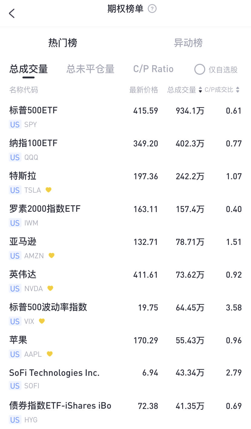 标普指数ETF-SPY期权成交934.1万张合约,其中,看跌期权占比62%。