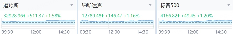 美东时间10月30日,美股高开高收,三大指数均涨超1%。截至收盘,道琼斯指数涨1.58%,报32,928.96点,创6月2日来最佳单日表现;标普500指数涨1.20%,报4,166.82点,创8月底以来的最佳表现;纳斯达克综合指数涨1.16%,报12,789.48点。