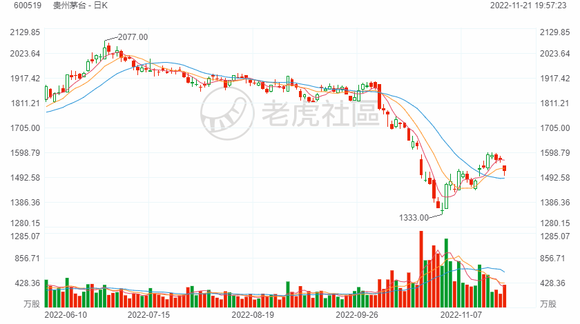 11月21日,贵州茅台:经贵州茅台酒股份有限公司初步核算,今年公司茅台酒含税销售收入已于2022年11月21日突破千亿元,具体为:2022年1月1日至11月21日公司实现茅台酒营业收入894.08亿元(含税销售收入1005.69亿元)。