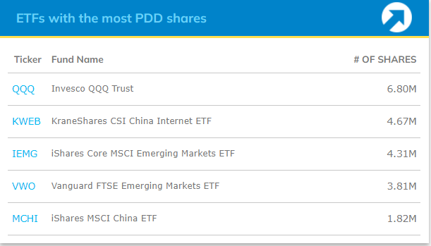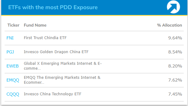 PDD由 103只不同的 ETF持有,构成 First Trust Chindia ETF ( FNI )的主要部分,根据ETF.com的数据,其投资组合权重为 9.64%。这是所有 ETF中最高的集中度。
