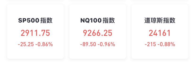 美国三大股指期货盘前下跌,截至发稿,道指期货跌0.88%;标普500指数期货跌0.86%;纳斯达克100指数期货跌0.96%。