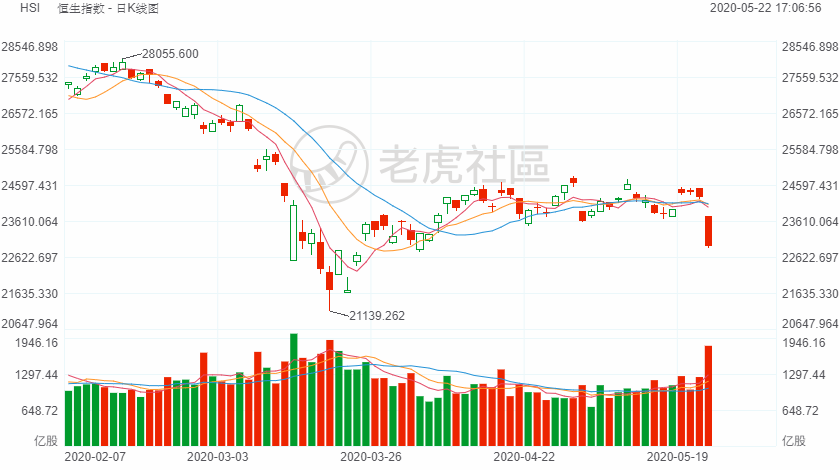 港股市场主要股指均现单边下跌行情,其中,恒指大跌5.56%重挫1350点,失守23000点大关,创2015年7月以来最大单日跌幅。国企指数下跌423.29点,跌幅4.30%,报9426.78点;恒生红筹指数下跌159.32点,跌幅4.23%,报3602.84点。全市上涨个股仅约230只,今日大市成交额为77亿港元,南下资金逆势净流入56.05亿港元。