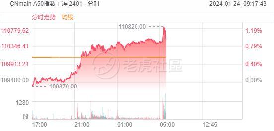 1月24日,富时中国A50指数涨幅扩大至1.2%;消息面:昨日证监会表态着力稳市场、稳信心。美股时段,中概股指收涨近5%。