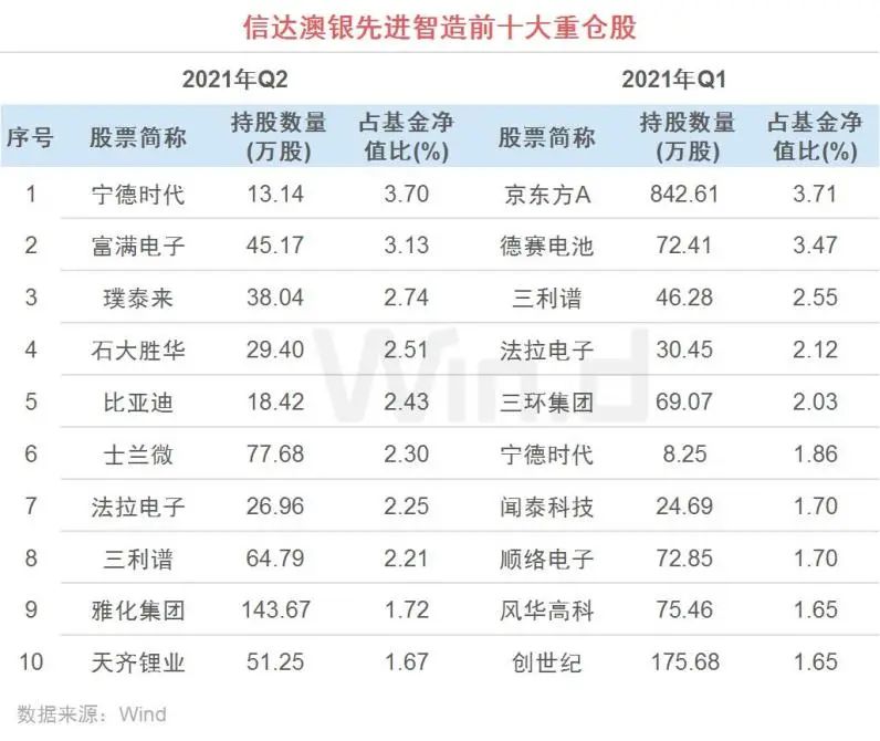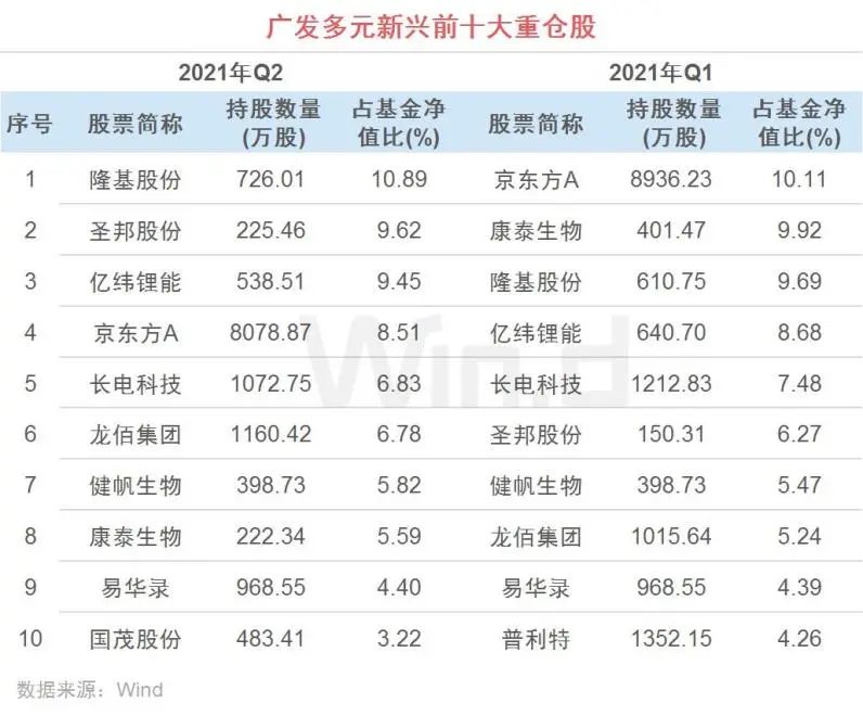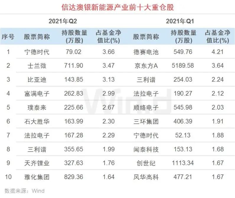 德赛电池、京东方A、顺络电子、三环集团、闻泰科技、创世纪、风华高科退出重仓股之列,重仓股中仅保留宁德时代、法拉电子、三利谱在内的三只个股。