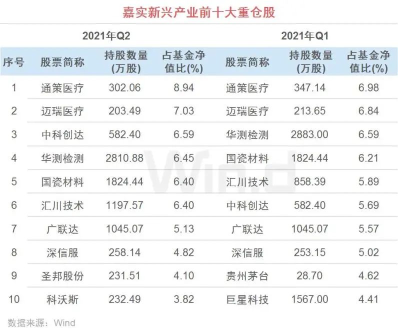 嘉实基金的王牌基金经理归凯管理的嘉实新兴产业股票基金中,二季度减持了通策医疗、迈瑞医疗和华测检测,增持汇川技术,同时圣邦股份和科沃斯新进前十大重仓股行列,贵州茅台和巨星科技则退出前十大重仓个股名单。