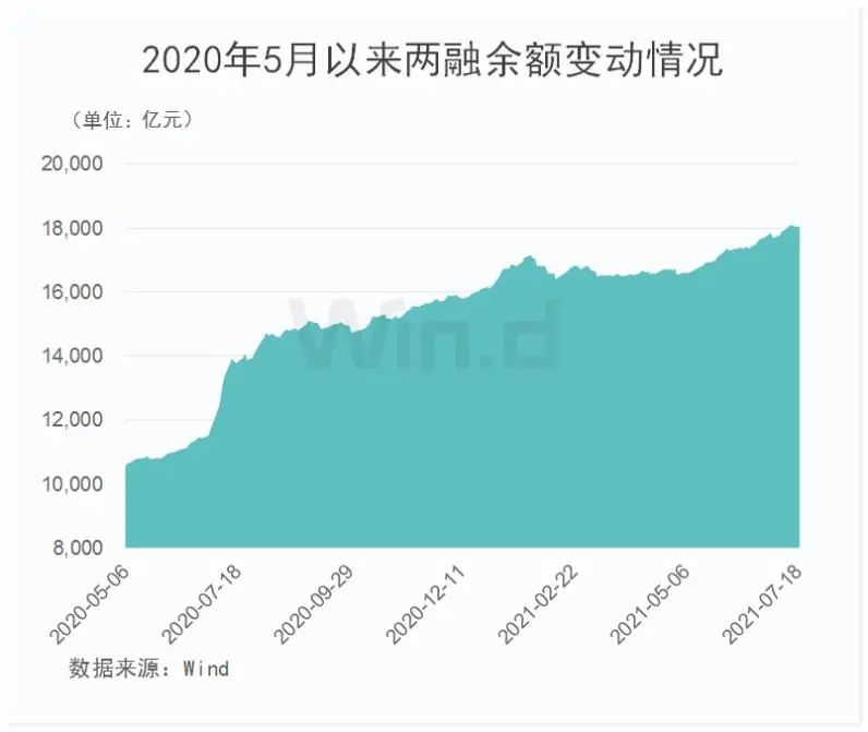 近期,两融余额高位震荡。截至周一(7月19日),A股融资融券余额为18046.13亿元,较前一交易日的18039.94亿元增加6.19亿元,维持近期高位。7月以来,两融余额持续走高,近日已连续6天站上1.8万亿关口,市场情绪相对乐观。
