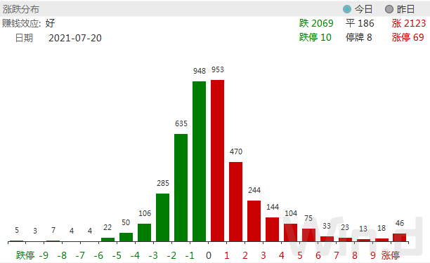 从整个市场的涨幅分布来看,市场情绪依旧稳定,涨跌基本各半,且各涨跌幅区间段相对均衡。