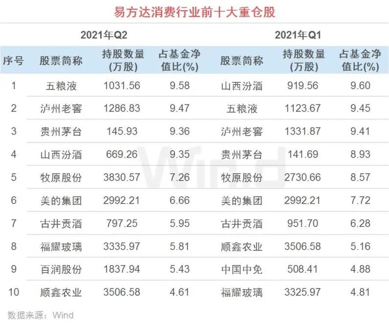 二季度,萧楠易方达消费行业持仓中的大部分个股一股未变,一季度前十大重仓股中,只有美的集团在二季度退出前十大重仓股,其余个股多数因股价涨跌变化了座次。