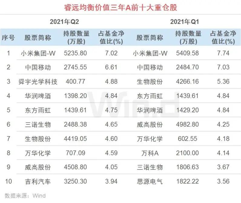 睿远基金另一名明星基金经理赵枫管理的睿远均衡价值中,小米集团-W、中国移动依旧是第一、第二大重仓股,舜宇光学科技取代生物股份,成为第三大重仓股,舜宇光学科技也是睿远均衡价值二季度新进的重仓股。二季度该基金还增仓了三诺生物。
