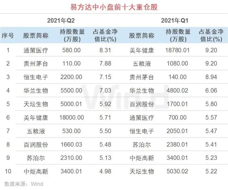 在易方达中小盘中,部分个股的持仓占比有较大变化,一季度持仓市值最高的美年健康被减持了780万股,在二季度末跌落至第6大重仓股的位置,其持仓占比,也从一季度末的占净值资产的9.2%降至二季度末的5.71%。
