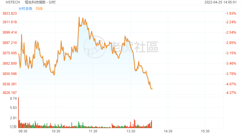 4月25日讯,港股恒生科技指数跌4%,商汤跌超7%,