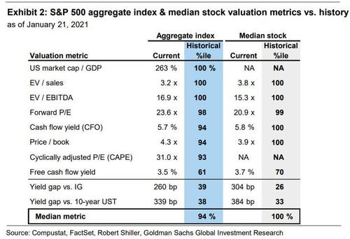 不过,高盛策略师同时指出,若是考虑当前美国国债收益率和公司信贷和现金水平,总体股市指数目前仍在历史平均估值水平之下: