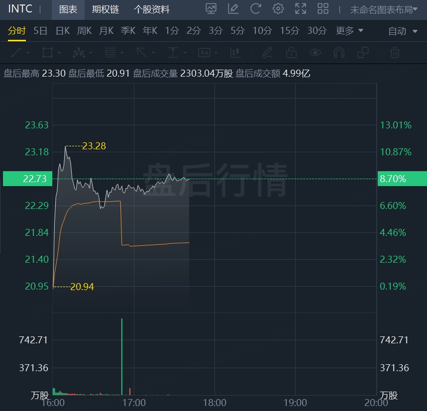 9月17日,英特尔美股盘后一度涨超11%。市场消息:英特尔为亚马逊代工定制款AI芯片,双方就产品和晶圆达成数年的合作框架。