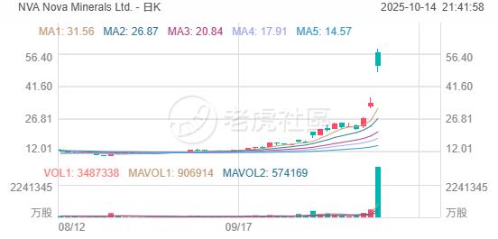 Nova Minerals Ltd. 暴涨65%,此前宣布从美国国防部获得资金,用于打造关键矿产供应链。