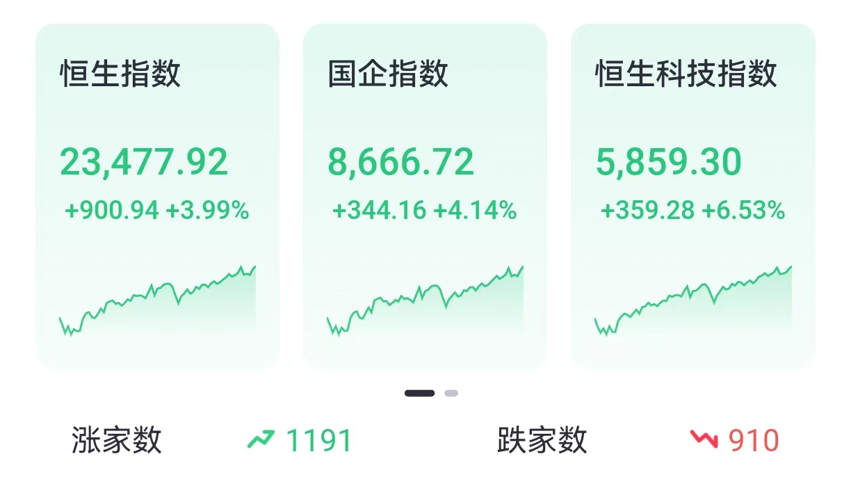 本周五(2月21日),港股市场收盘普涨。恒生指数上涨3.99%,国企指数上涨4.14%,恒生科技指数上涨6.53%,红筹指数上涨1.55%。