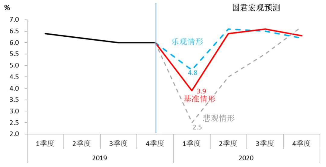 在此条件,一季度GDP下行至3.9%左右后,二、三季度在复工和逆周期政策帮助下强势反弹,全年GDP增速仍将达到5.8%左右。
