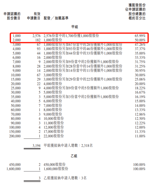 甲组每手1000股,一手中签率65.99%,申购2手稳中一手。