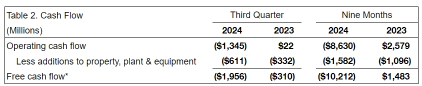 波音第三季度经调整自由现金流为负19.6亿美元,预估为负18.7亿美元。