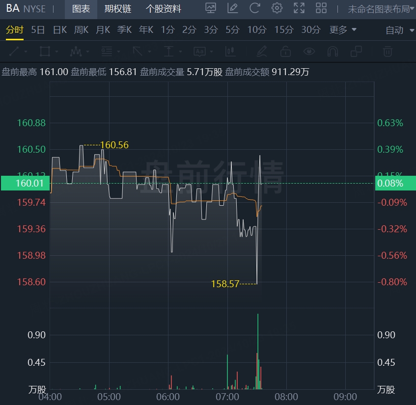 财报发布后,波音美股盘前小幅波动。