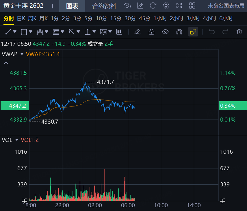黄金期货日内走高,截止发稿,涨0.34%,报4347.2美元/盎司;白银期货飙升,截止发稿,涨4.19%,报65.97美元/盎司。