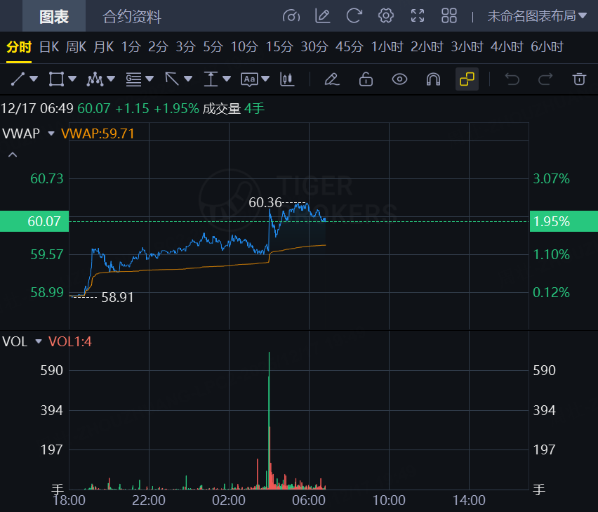 12月17日,美股三大股指期货齐涨,截止发稿,道指期货涨0.2%,纳指期货涨0.41%,标普500指数期货涨0.35%。