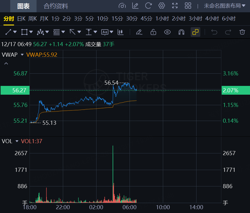原油期货强势反弹,截止发稿,WTI原油涨2.07%,报56.27美元/桶;布伦特原油涨1.95%,报60.07美元/桶。