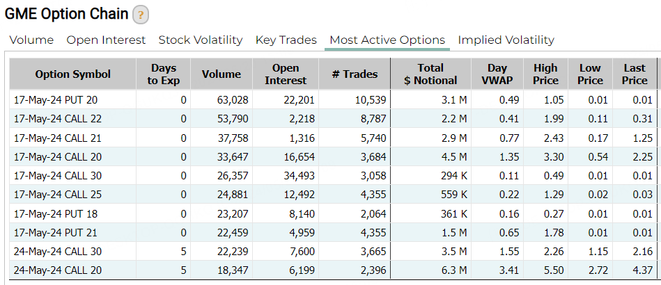 活跃成交中,CALL单依旧占据优势,但排名最高的确实一份PUT,20美元的行权价已令投资者有所收获。而本周30美元行权价的CALL,也带给市场一些遐想。难道,这场戏还会继续演下去?