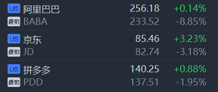 中概电商股盘前下挫,阿里巴巴跌近9%,市场监管总局依法对阿里巴巴集团涉嫌垄断行为立案调查;京东跌超3%,拼多多跌近2%。