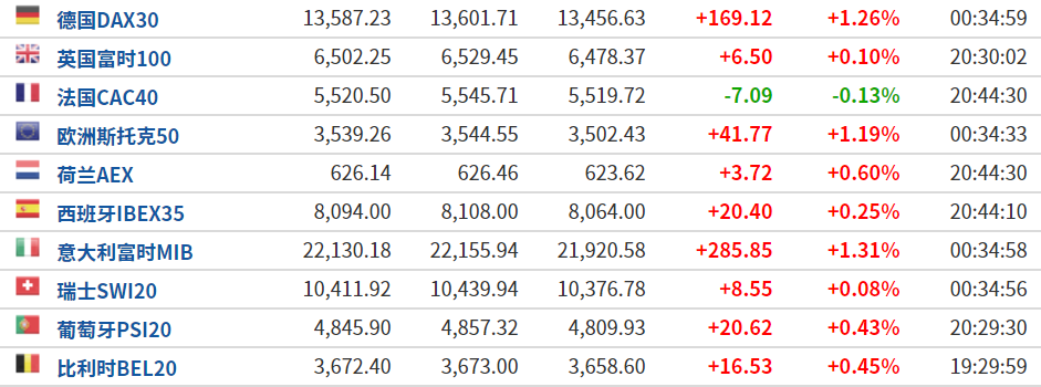 截至发稿,英国富时100涨0.10%、法国CAC40跌0.13%。