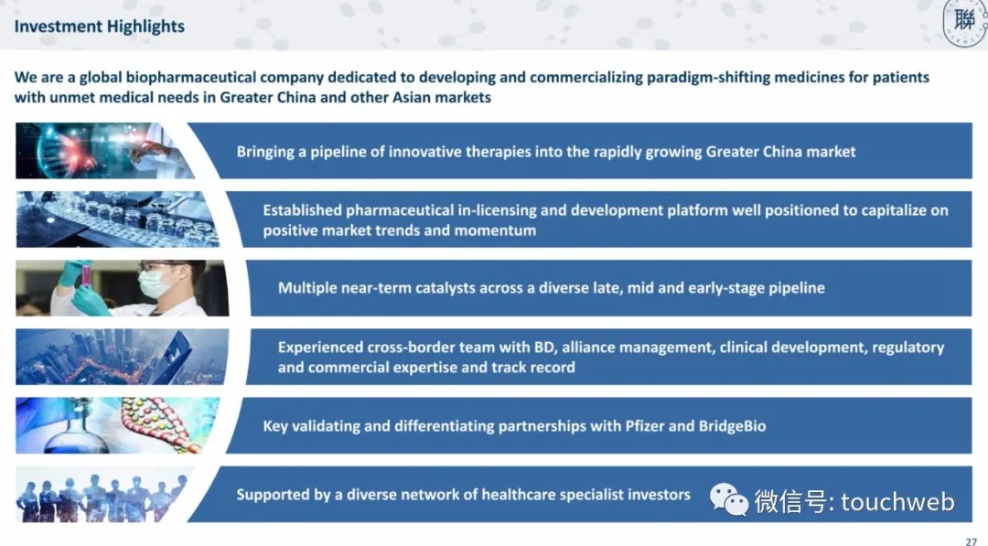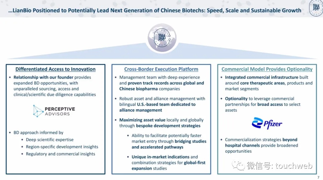 联拓生物由美国生物医药投资基金PerceptiveAdvisors孵化的生物科技公司,主要通过与全球性生物制药公司达成战略合作关系,开发为中国和亚洲其他主要国家和地区的患者提供优质的治疗药物及科学疗法。