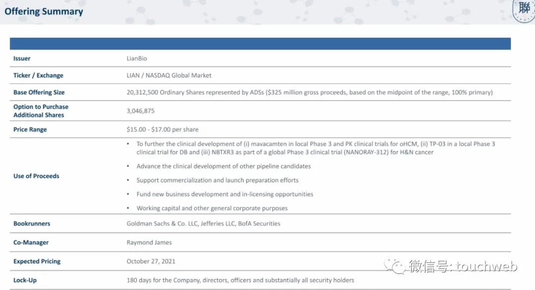 联拓生物(股票代码为:“LIAN”)日前向美国SEC递交招股书,并公布发行区间为15美元到17美元,此次发行2031万股,最高可募资3.4亿美元。