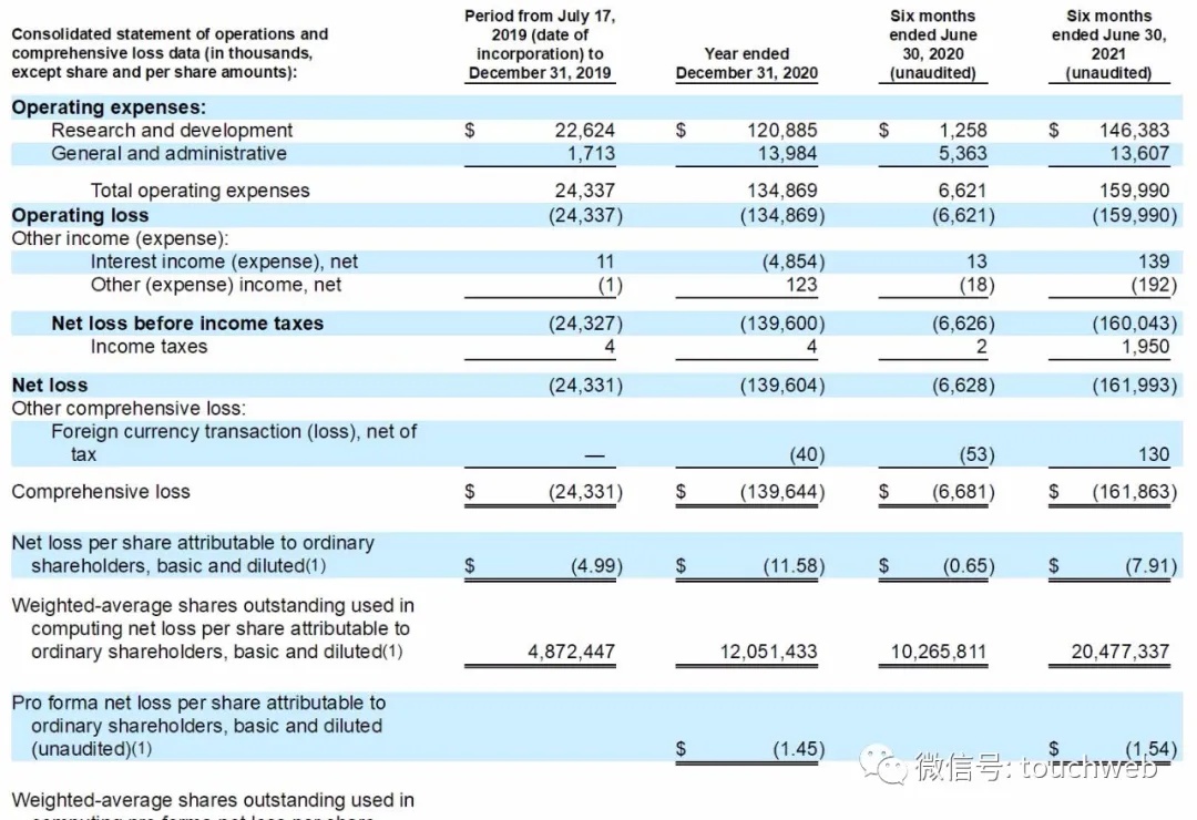 招股书显示,联拓生物暂无营收,目前处于亏损状态。联拓生物2020年研发开支为1.2亿美元,2021年上半年研发开支为1.46亿美元。