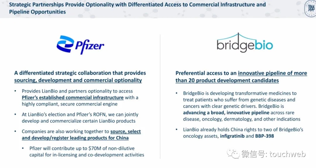根据协议条款,联拓生物将获得中国及指定亚洲市场的商业化权益,并参与infigratinib和BBP-398的临床研发。同时,联拓生物获得BridgeBio公司超过20种管线产品在中国及其他亚洲主要市场的优先使用权。这将加速推进BridgeBio公司在该地区的临床研究和商业化,让其能以创新的手段迅速解决庞大群体的医疗需求。