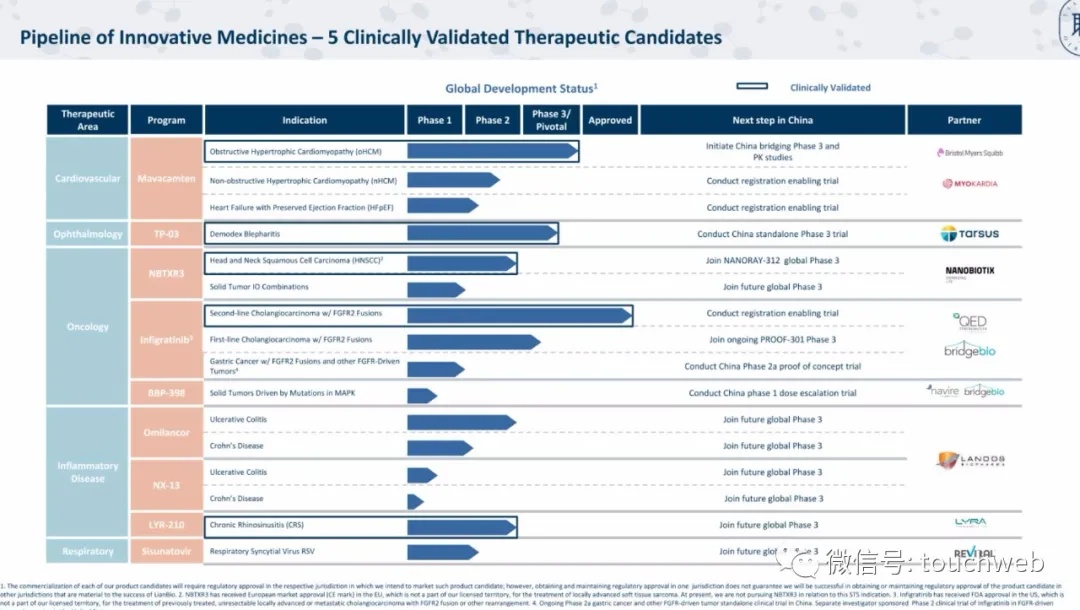 其中,抗肿瘤候选药infigratinib,是一款首创的选择性FGFR抑制剂,目前正处于3期开发阶段,用于治疗由FGFR基因异常导致的胆管癌(CCA)和尿路上皮癌(膀胱癌)等疾病。