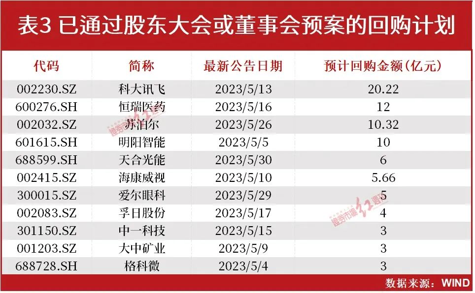 与此同时,也有部分公司推出了回购计划,其中科技股科大讯飞、医药股恒瑞医药和家电股苏泊尔等预计回购金额居前,均在3亿元以上(见表3)。对于这些公司在经历真金白银投入后的市场表现,《红周刊》将持续关注。