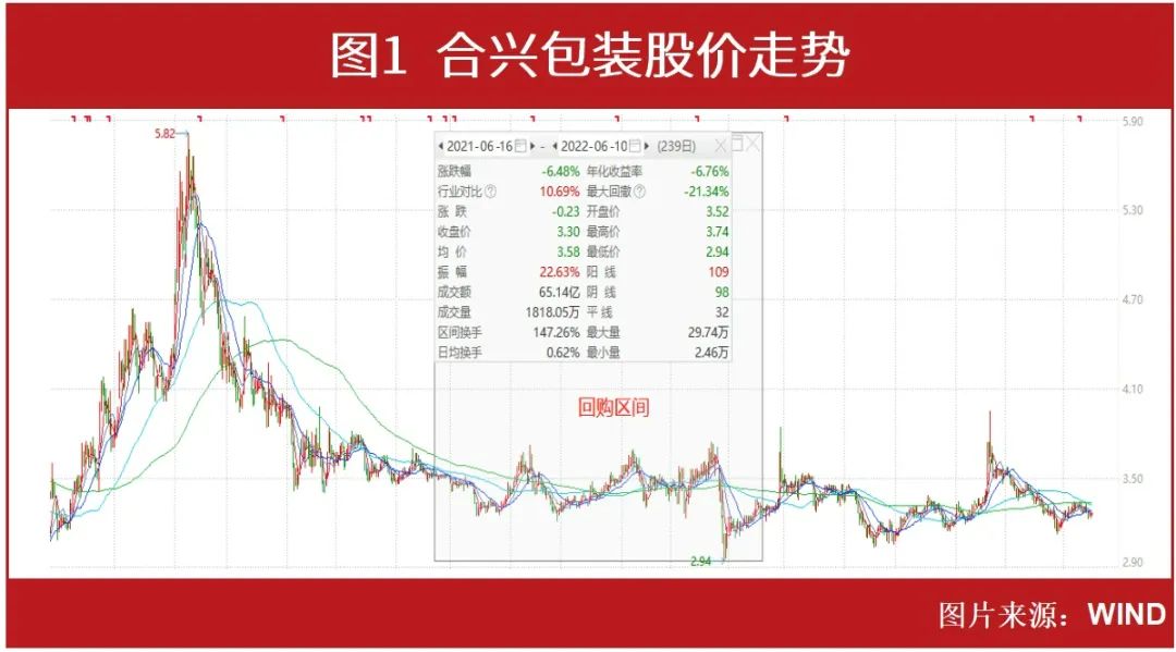 这其实并不是合兴包装首次进行股票回购,在2021年即有过这样的操作。据梳理,在2021年6月16日,合兴包装推出了回购报告书,公司计划在回购方案通过之后的12个月以不超过5.69元/股的价格,斥资5000万元~1亿元。最终,合兴包装在去年6月10日以接近回购金额上限完成了回购计划。
