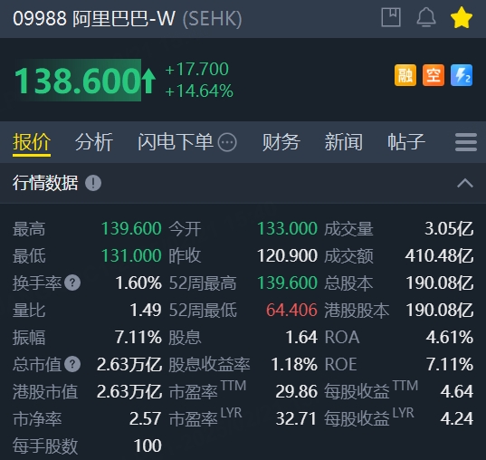 港股阿里巴巴成交额超400亿港元,创历史天量
