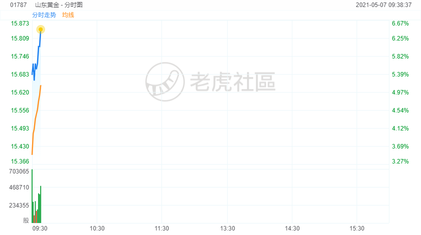 5月7日,金价持续走强,港股黄金股集体走高,