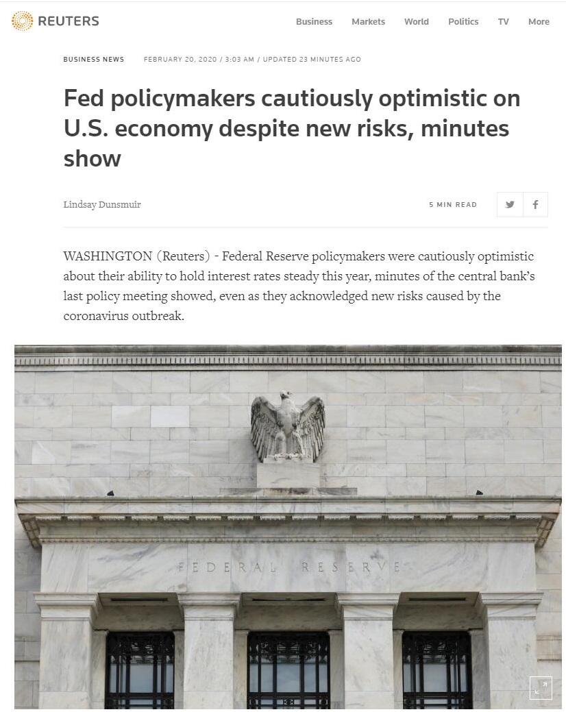 本周三公布的今年1月会议纪要显示,尽管承认面临新型冠状病毒疫情带来的新风险,美联储决策者仍对他们今年保持利率不变的能力持谨慎乐观态度。