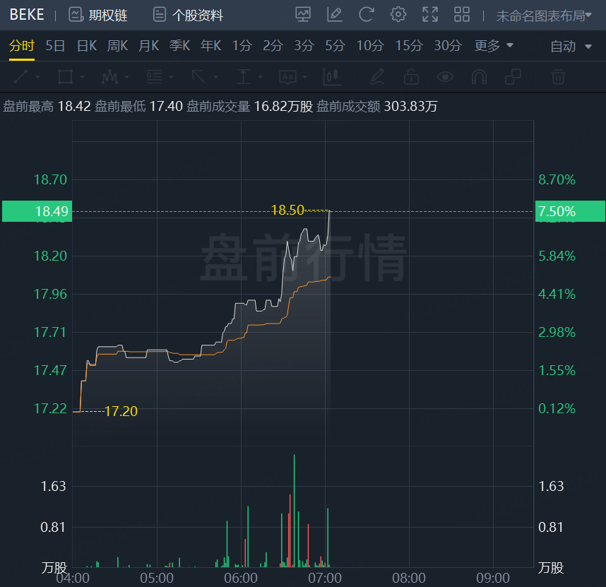 9月1日,贝壳美股盘前走高,现涨超7%;消息面,今日北京、上海等城市相继发布“认房不认贷”政策措施。