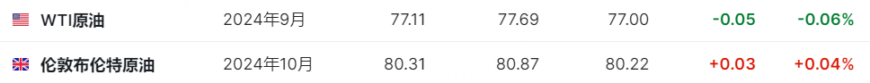 国际油价小幅震荡,美油报77.11美元/桶,日内跌0.06%;布油现报80.31美元/桶,日内涨0.04%。