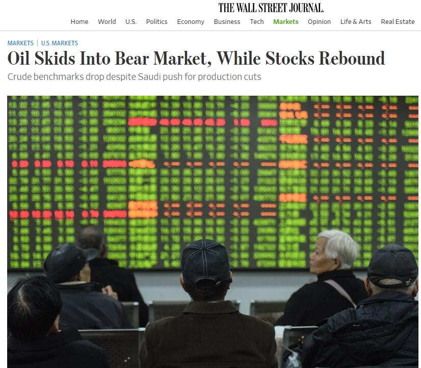 华尔街日报 | 原油跌入熊市 但美股反弹